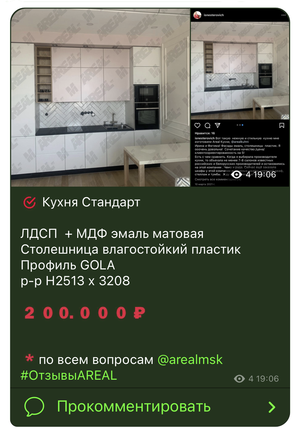 Вот такую нежную и стильную кухню мне изготовили AREAL-M, @arealkuhni Ирина и Фатима! Фасады эмаль, столешницы пластик. Я ооочень довольна! Сочетание качество /цена/ клиентоориентированность на 5! Есть с чем сравнить. Когда я выбирала производителя кухни, то объехала не менее 7-8 салонов известных российских и белорусских производителей и остановилась на этой компании. Чему и рада. Сейчас ещё заказала шкафы у этой компании встроенные шкафы, книжный шкаф, стеллажи и тумбы. Жду с нетерпением! @arealkuhni